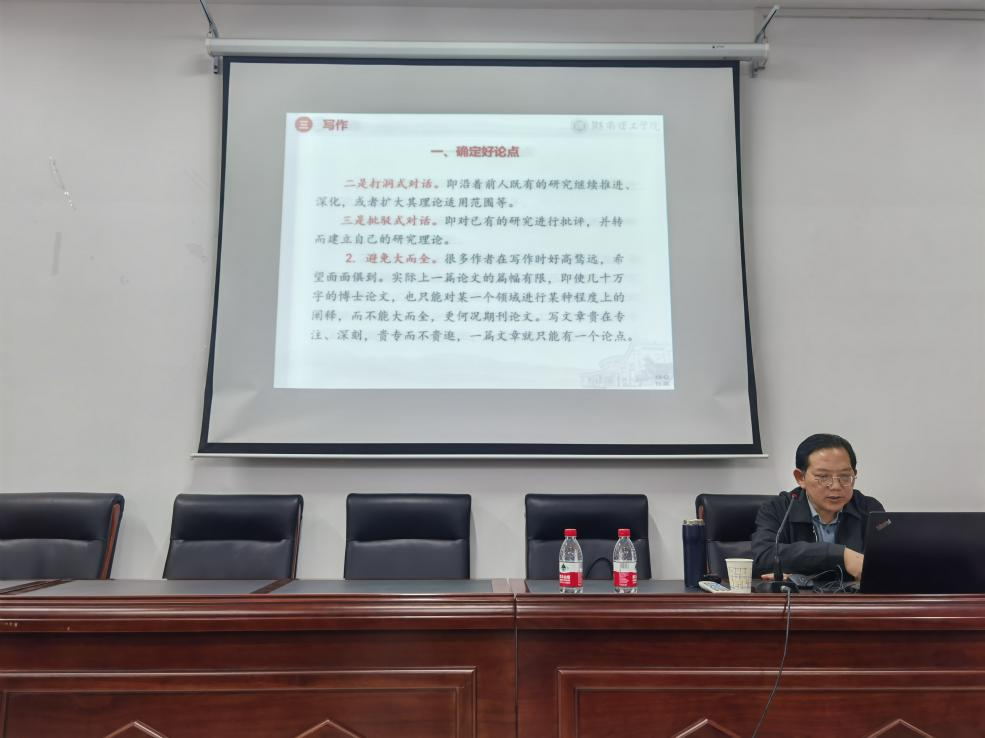 4月11日,学报编辑部在力行楼A2019举办“学术论文的写作与发表”学术讲座。湖南理工学院二级教授、期刊社社长彭柏林担任主讲人。曾广录教授主持讲座。全校百余名师生参加了讲座。
